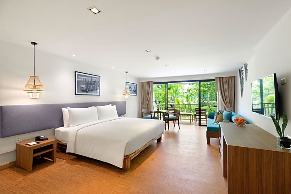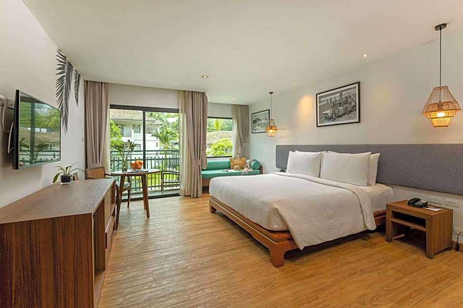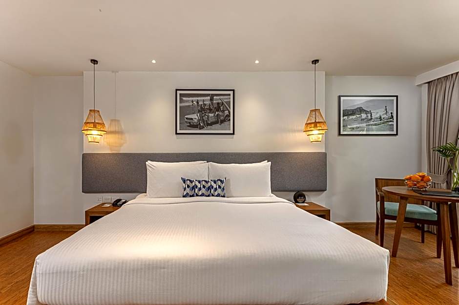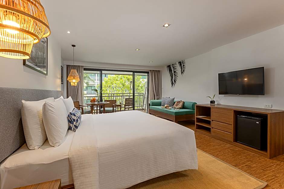 Spacious rooms with balcony, featuring king or 2 twin beds, dining area, day bed, and shower.
