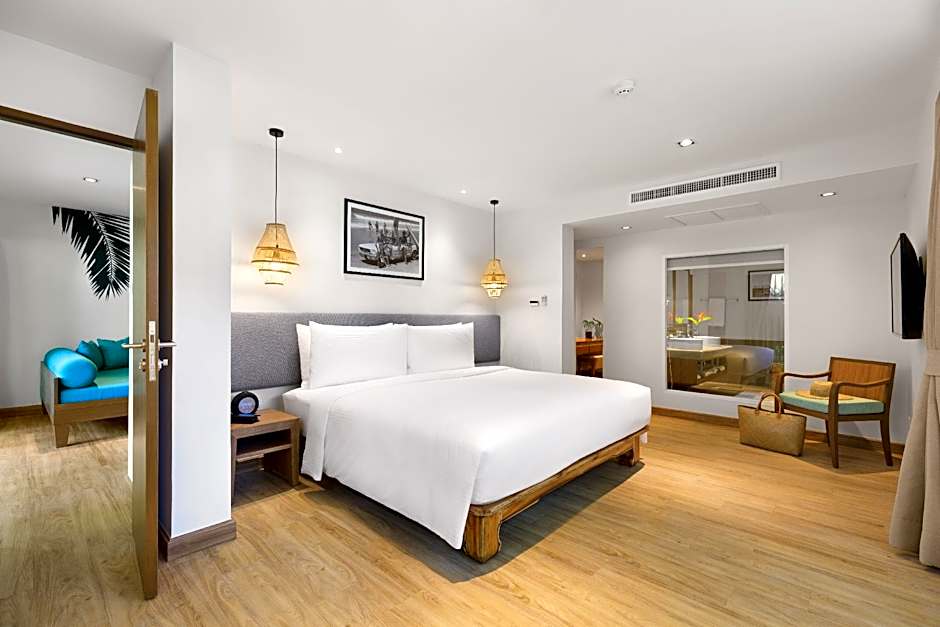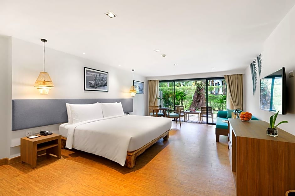Spacious rooms with terrace, featuring king or 2 twin beds, dining area, day bed, and shower.